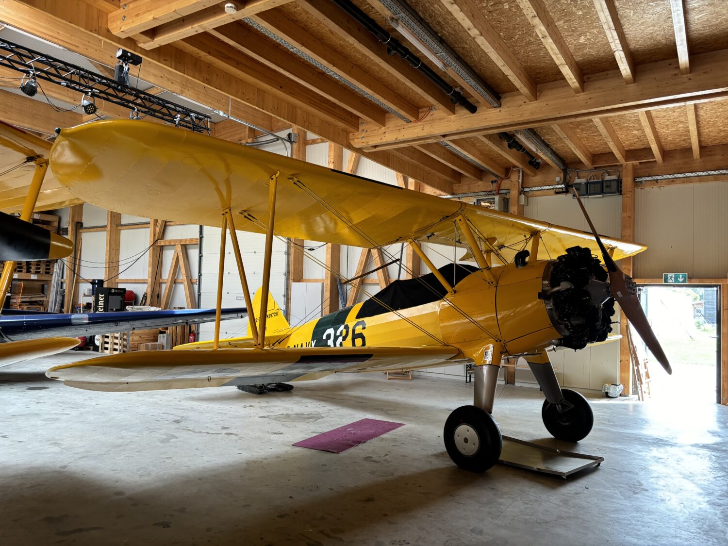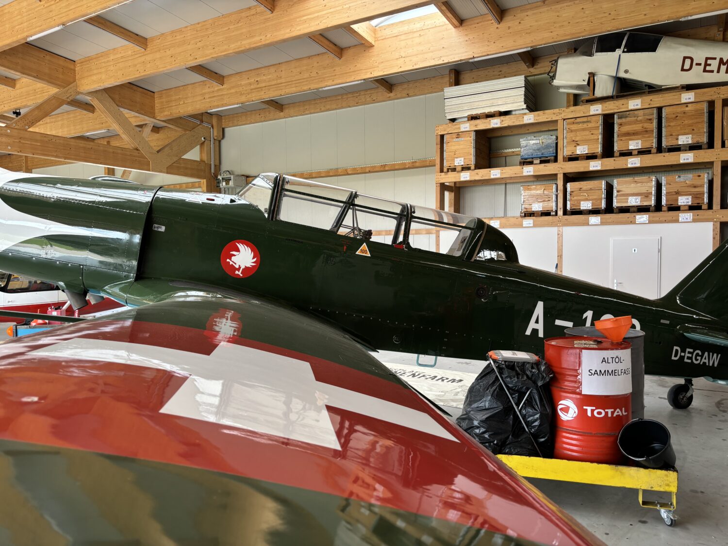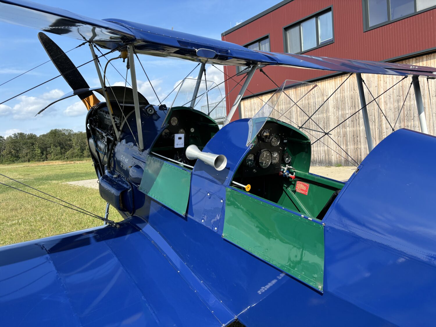 In de ‘QUAX’-hangar op Bienenfarm was bovendien een prachtige collectie oldtimers te bewonderen. Bezoekers kunnen er – afhankelijk van het moment – terecht voor onder meer Focke Wulfs, meerdere Boeing Stearmans, een Pilatus P2 en P3 en een Harvard IV. Kers op de taart was de schitterende Stampe ‘D-EBOU’ die even binnen kwam taxiën.