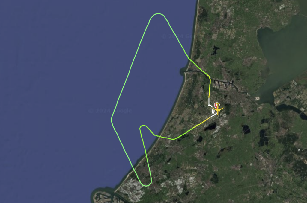 Geregeld komen vliegtuigen in een holding pattern terecht als vlak na take-off om wat voor reden dan ook een omkeer gemaakt dient te worden. Op die manier wordt brandstof verbrand (of geloosd) en kan met een lichter gewicht een veilige landing gemaakt worden. De A330 was echter waarschijnlijk niet op maximaal gewicht vertrokken en vloog direct in zuidelijke richting langs de kust van Nederland op en kwam via Den Haag weer boven land terecht. Na een bocht boven die stad ging het vliegtuig opnieuw richting Noordzee om vervolgens op te lijnen voor de Kaagbaan (06/24). Daar volgde ongeveer 45 minuten na vertrek een veilige landing.