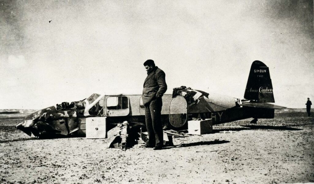 Adembenemend verwoordt De Saint-Exupéry de tijd die hij samen met zijn monteur vervolgens in de woestijn doorbrengt: de overlevingsdrang, de twijfels, de wanhoop: ‘Je hebt veertien dagen nodig om in de woestijn een vliegtuig wiens ligging op nog geen drieduizend kilometer nauwkeurig te bepalen is, op te sporen. (…) Maar vandaag koester ik nog hoop op deze kleine kans, want er is geen andere. Ik verander van tactiek en besluit alleen op onderzoek uit te gaan. Prévot zal een vuur maken en het aansteken als we bezoek krijgen. Maar we zullen uiteraard geen bezoek krijgen. Ik ga dus op weg en ik weet zelfs niet of ik de kracht zal hebben om nog terug te komen. (…) Er is in de Sahara ongeveer veertig procent vocht, hier is er daarentegen maar achttien procent. En het leven verdwijnt zo snel als het kan verdampen. (…) Ik loop verder. Door uitputting verandert er iets in mij. Als dat geen luchtspiegelingen zijn, verbeeld ik me dat ze er zijn. “Hé daar!” Al schreeuwend heb ik gezwaaid, maar de man die daar in de verte gebaren maakte was alleen maar een zwarte rots.’ En de nodige ontberingen verder: ‘Ik had niet gedacht dat ik zo erg de gevangene van het water was. (…) Je denkt dat je vrij bent. Je ziet het touw niet dat je met de put verbindt, dat je als een navelstreng met de buik van de aarde verbindt. Als je ook maar een stap te ver gaat, sterf je.’