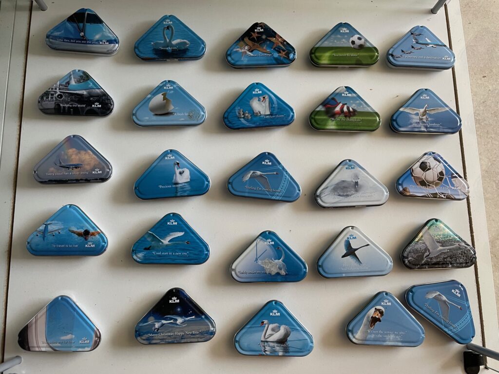 Het ene herinnert aan de eerste Lima-vlucht KL743 met de Boeing 777-200ER, het andere aan vijftien jaar samenwerking tussen KLM en Kenya Airways en nog weer een ander aan een medaillevlucht Beijing – Amsterdam. Ook een Kaaswaag waarop enkel Kaaswaag Gouda KLM staat ontbreekt niet in de verzameling. Op weer een andere Kaaswaag staat er bovendien Bols bij. En jawel, ook is er een Kaaswaag die aan die ene MD-11-vlucht van 30 maart 2008 herinnert.