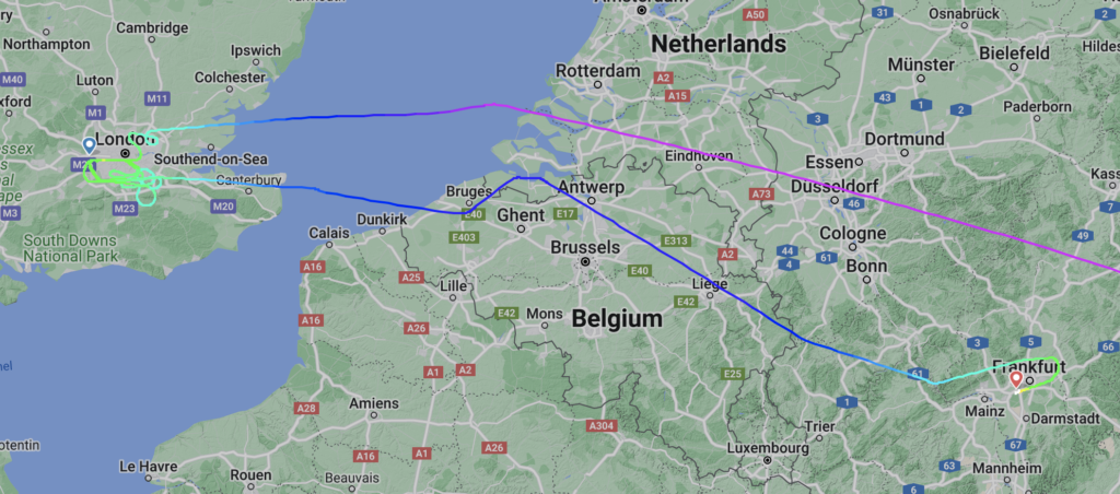 Na een korte stop in Frankfurt, van ongeveer twee uur en 25 minuten, steeg de A380 wederom op richting Londen. Ditmaal verliep de vlucht voorspoedig en wist de superjumbo bij de eerste poging veilig te landen op Heathrow.