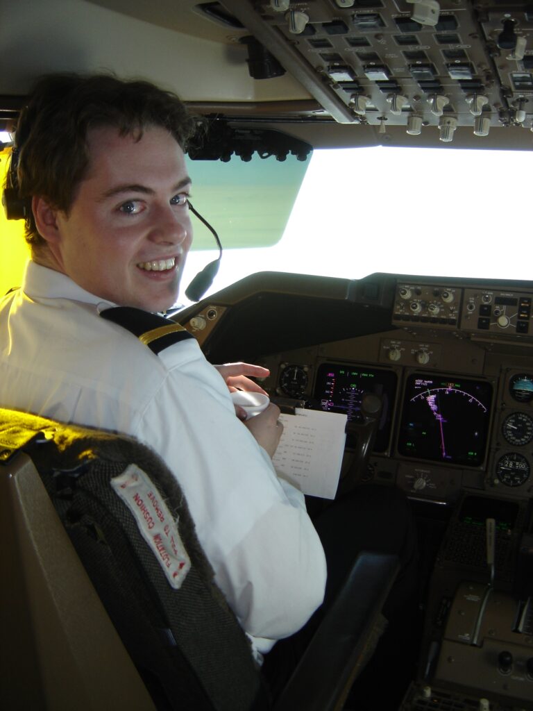 ‘In 2005 was ik klaar met de vliegschool en in 2006 kon ik bij KLM beginnen als Second Officer op de Boeing 747-400’, vervolgt Reinout. ‘Dat ik met mijn carrière begon op het allergrootste en een van de meest iconische vliegtuigen, vond ik echt heel bijzonder. De bestemmingen waren ook heel erg leuk. Maar uit de functie haalde ik weinig voldoening omdat je als Second Officer niet mag starten en landen. Als jonge piloot wil je dat toch ook doen. Omdat je elk half jaar je voorkeuren mag opgeven, dacht ik: wie niet waagt wie niet wint, ik probeer op de Fokker bij KLM Cityhopper te komen. Qua leeftijd sloot dat ook veel beter aan, op de 747 zaten toch vooral seniore vliegers in tegenstelling tot op de Fokker. De Queen of the Skies werd ook wel, heel flauw, een bejaardenflat met een lift genoemd. Dat laatste vanwege het liftje waarmee de cateringtrolleys naar het upperdeck werden vervoerd.’