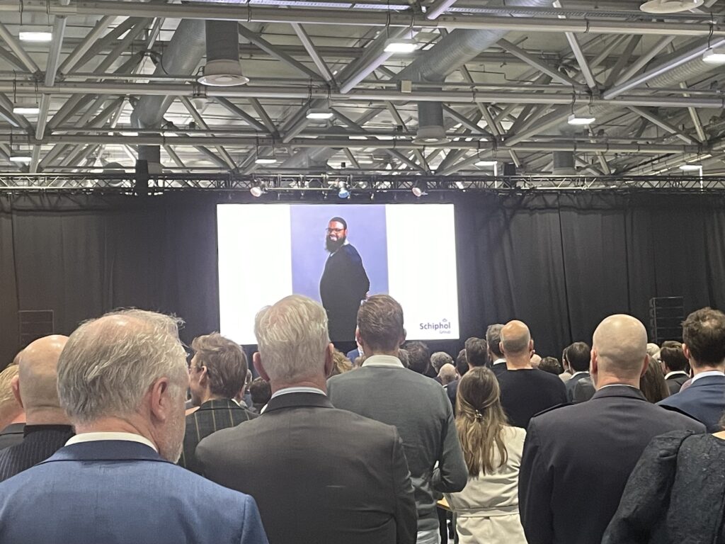 Van Oord kwam met meer cijfers. ‘Elke dag zorgen wij er op Schiphol voor dat er tussen de 150 en 220.000 mensen aankomen vertrekken of overstappen. Wij zijn er trots op dat 9 miljoen Nederlanders onze luchthavens en onze luchtvaartmaatschappijen hebben gebruikt in 2024. 66,8 miljoen reizigers reisden met het vliegtuig van, via of naar Schiphol, een stijging van 8% ten opzichte van 2023. Bijna 42,6 miljoen reizigers reisden direct, bijna 24,3 miljoen reizigers waren transferpassagiers. Dat is nog steeds minder dan het recordjaar 2019, maar wij verwachten wel dat wij komend jaar of het jaar daarna in de buurt komen van het recordjaar 2019. Wij voerden in 2024 ruim 473.000 vluchten uit op Schiphol. Nederland was via Schiphol verbonden met maar liefst 301 directe bestemmingen. Geen 300 maar 301. Wij staan op de tweede plek in Europa als de best verbonden luchthaven. Kijken we naar vracht, ook belangrijk, dan zien we dat we 1,49 miljoen ton vracht vervoerden. Dat was ook een stijging van 8% in 2024 ten opzichte van het jaar daarvoor.’ Van Oord prees de uit 70.000 mensen bestaande Schiphol-familie die dit alles met elkaar voor elkaar krijgt.