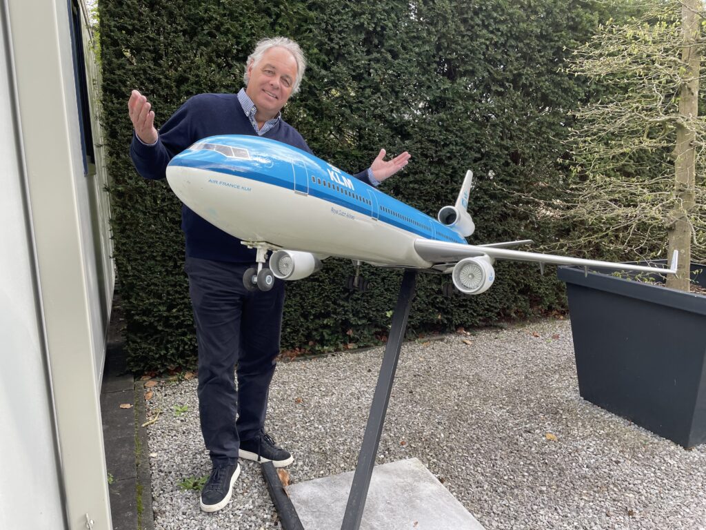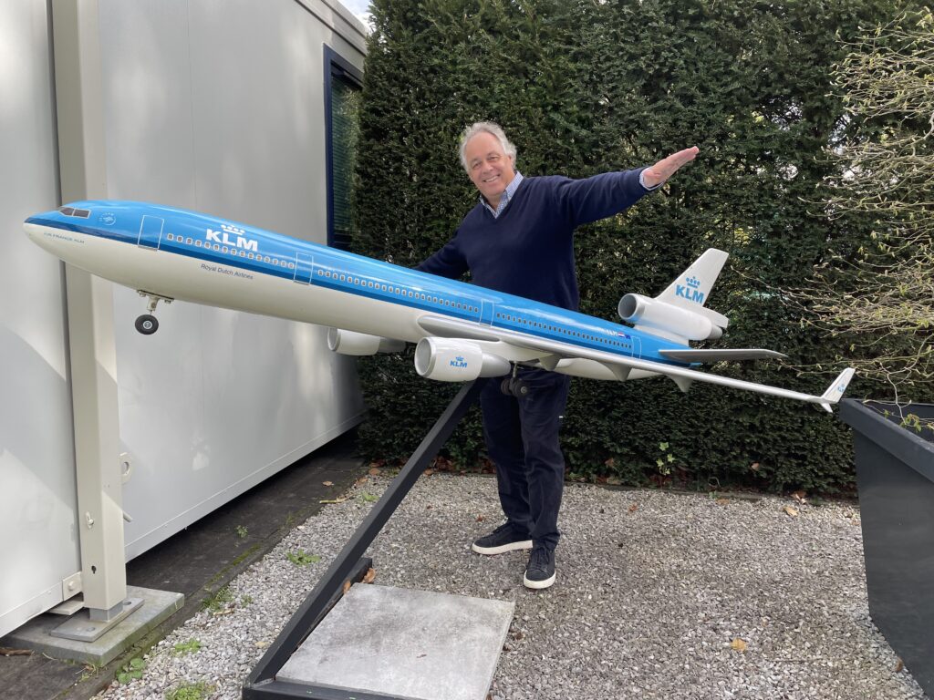 Inmiddels komt voor Aad de pensioengerechtigde leeftijd in zicht terwijl zijn vijf kinderen de zaken nu geheel zelfstandig voor hun rekening nemen. Dat MD-11-model was vooral zijn ding. ‘De link met koffers en reizen is er natuurlijk nog steeds’, zegt hij. ‘Mijn kinderen zijn koffers voor KLM gaan maken, inclusief de KLM-100-jaar-koffer. Al die witte koffers van de Postcode Loterij die je onderweg ziet, komen uit hun koker. Ze wegen superlicht en zijn gemaakt van gerecycled materiaal zoals plastic, touwen en visnetten die in samenwerking met Waste Free Oceans wereldwijd preventief in havens zijn verzameld.’ Met duurzame groene koffers in allerlei kleuren, lopen ze vooralsnog vooruit op de concurrentie. Groen past welbeschouwd goed bij het beeld dat KLM heden ten dage graag wil uitstralen. Daarin is voor de MD-11 bij de blauwe maatschappij al heel lang geen plek meer. De tijd dat het MD-11-schaalmodel een mooie koppeling vormde met reizen en koffers vervliegt daarmee met de jaren ook steeds meer.