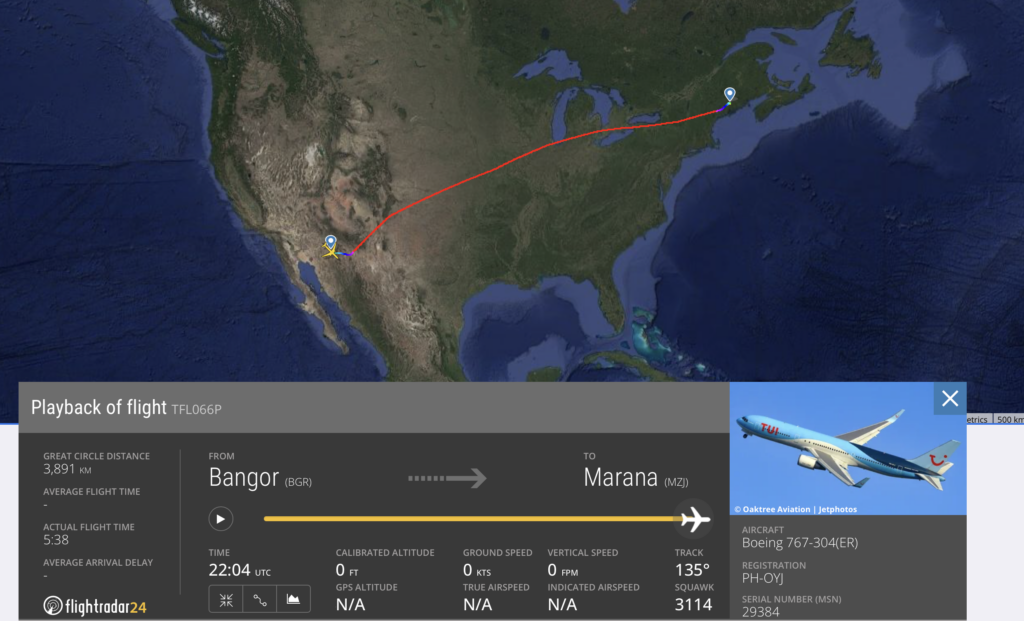De allerlaatste Boeing 767 van TUI, die begin november de vloot van de airline verliet, is aangekomen op haar voorlopig laatste opslagplaats in de Amerikaanse woestijn.