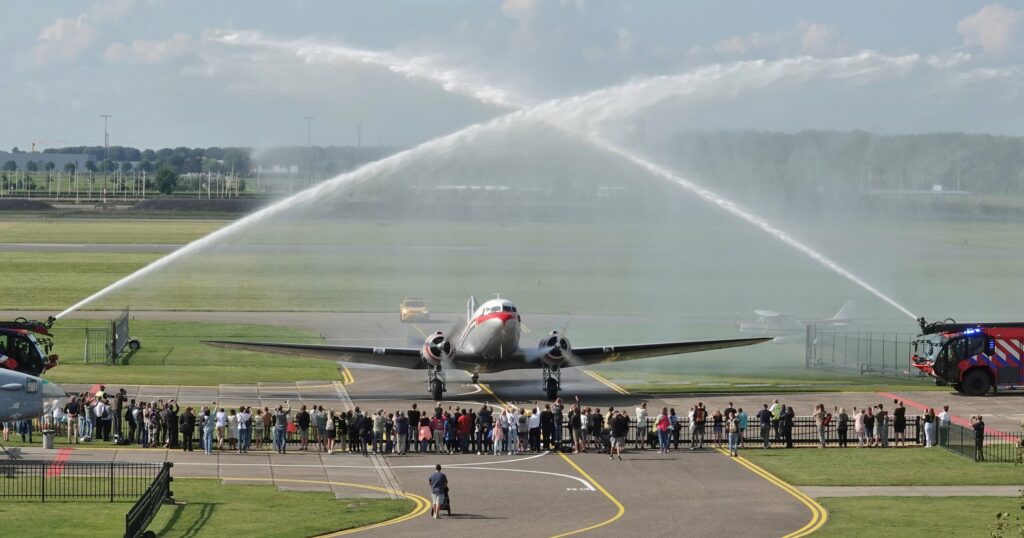 ‘Helemaal geweldig was in 2019 de herdenking van D-Day, toen 75 jaar geleden, met meer dan twintig DC-3’s, C-47’s, C-53’s en zelfs een Lisunov Li-2 op Caen-Carpiquet’, vervolgt Paul. Niet zonder trots maakt hij de kanttekening dat de PBA als enige van het hele stel passagiers mocht vervoeren. ‘Onvergetelijk zijn ook de Market Garden-vluchten waarbij zowel over haar originele dropzones werd gevlogen als over de airstrip Keent, nabij Oss, waar ze in september 1944 is geland. Voor de oorlog verzorgde KLM daar nog rondvluchten. Zeer indrukwekkend was het wanneer aan bood van de PBA oorlogsveteranen meevlogen, die mannen waren al ver in de negentig’. Ook de vlucht in 1998 met de DC-4 DDS ter herinnering aan de Berlijnse luchtbrug van weleer, wordt gememoreerd. ‘Met Rosinenbombers kwamen de Engelse en Amerikaanse Geallieerden voedselvoorraden brengen waarbij ze op kleine zelf in elkaar geknutselde parachuutjes snoepgoed uit het raam gooiden voor de kinderen die naar de vliegtuigen stonden te kijken.’ Het moment waarop KLM afscheid nam van de MD-11 met Farewell flights wordt evenmin vergeten. Paul: ‘Toen de PH-KCD terugkwam van die laatste vlucht ging de PBA die jet tijdens het taxiën voor. Wat was het een machtig gezicht, onze Dakota voor die enorme machine.’