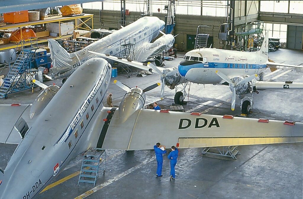 Als engineer sleutelde Paul zelf niet aan de KLM-vliegtuigen. Als vrijwilliger bij de DDA deed hij dit echter wel. ‘Ik heb de Dakota met haar art-deco-lijnen altijd een mooi vliegtuig gevonden’, zegt hij. ‘De club huisde nog in de oude verkeerstoren op Schiphol Oost toen ik me in 1984 aanmeldde. Het was pionieren. Soms stonden we aan de kist te sleutelen in hangar 8 en moesten we er ineens uit omdat er een DC-9 moest worden gewassen.’ Hij ging mee naar Malta om de tweede Dakota op te halen. ‘Met de restauratie van dit werkpaard zijn we twaalf jaar bezig geweest. Het uiteindelijke resultaat was zo goed dat een vertegenwoordiger van McDonnell Douglas over de PH-DDZ sprak als de laatst gebouwde DC-3.’ De DDA spreidde haar vleugels verder uit met de koop van een DC-4 en een C-54, de militaire versie van de DC-4. ‘Alleen met de DC-4, de DDS, hebben we vijf jaar gevlogen’, zegt Paul. ‘De C-54 werd gekocht voor haar onderdelen en heeft na haar komst nooit gevlogen, de inschrijving in het luchtvaartregister als DDY bleef ongebruikt. Uiteindelijk is ze verkocht aan het Aviodrome. Maar de machtige Skymasters waren voor de DDA eigenlijk te groot, te complex. Strengere regelgeving hielp ook niet mee en na vijf jaar moesten we afscheid nemen van deze kist. Het werken aan die machines was erg leuk met een club mensen die toen nog jong was.’