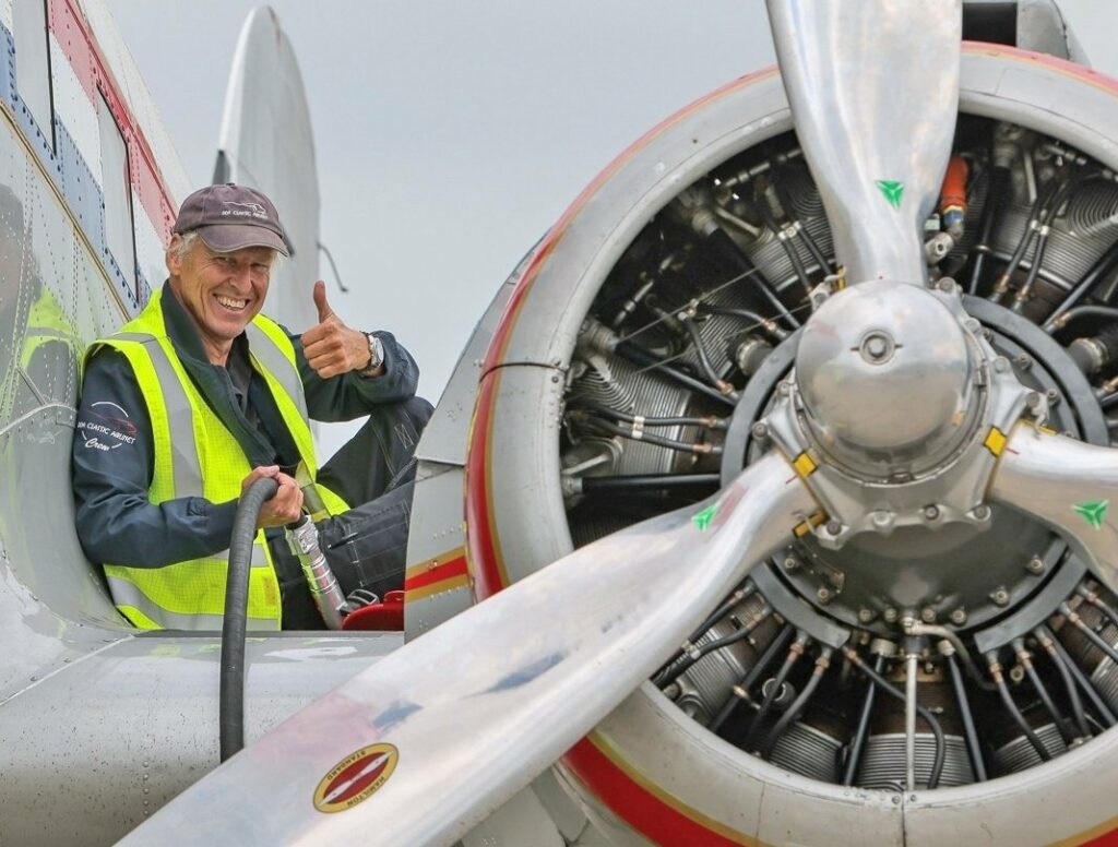 Paul begint te lachen. ‘In Normandië waren we in 2014 met heel veel andere Dakota’s toen we net over die gewichtsbesparing-modificatie beschikten. Als enige van de hele bups mochten wij met onze AOC met passagiers vliegen. Een Finse DC-3 vlieger merkte dat wij als een speer omhoog gingen in vergelijking met die andere Dakota’s. “Wat voor soort motoren zitten hierop?”, vroeg hij. “Gewoon, de standaard R-1830’s van Pratt & Whitney”, antwoordde ik en legde hem het hele verhaal uit. De PBA is echt de enige die dit heeft.’