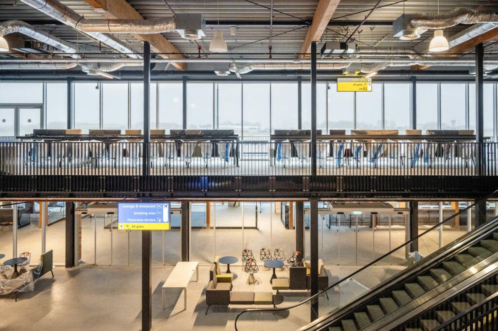 Jan, die zich vasthoudt aan het regeerprogramma, rekent erop dat de zo gewenste duidelijkheid dit jaar er dan toch eindelijk komt. Daarbij gaat hij ervan uit dat de uitkomst voor Lelystad Airport en Flevoland positief is. In 2019 werd al een LEED-Goldcertificaat in de wacht gesleept dat aantoont dat de passagiersterminal een van de duurzaamste ter wereld is. ‘Geen gasaansluitingen, wel grijs water voor de toiletten, wel PV-cellen’, licht Jan toe. Alles in de operatie op air side is elektrisch, dus de push backtrucks, de cateringwagens, de trap die richting een vliegtuig komt. ‘Als een van de weinige luchthavens in Nederland beschikken we over laadpalen voor elektrische vliegtuigen’, zegt Jan met enige gepaste trots.