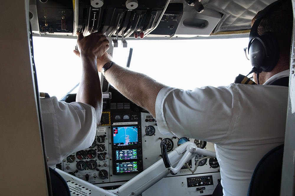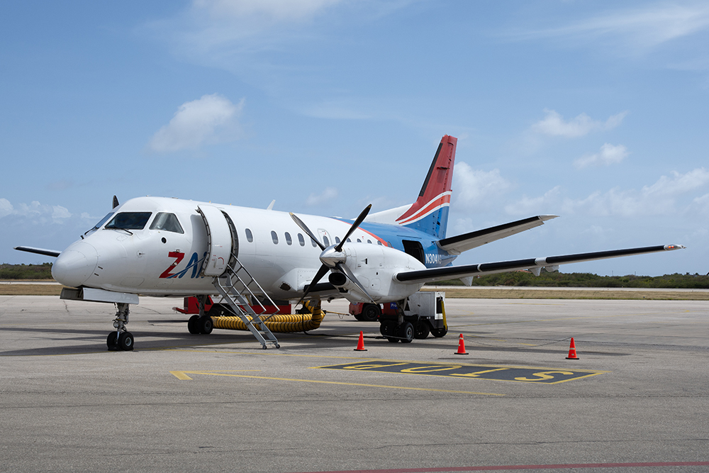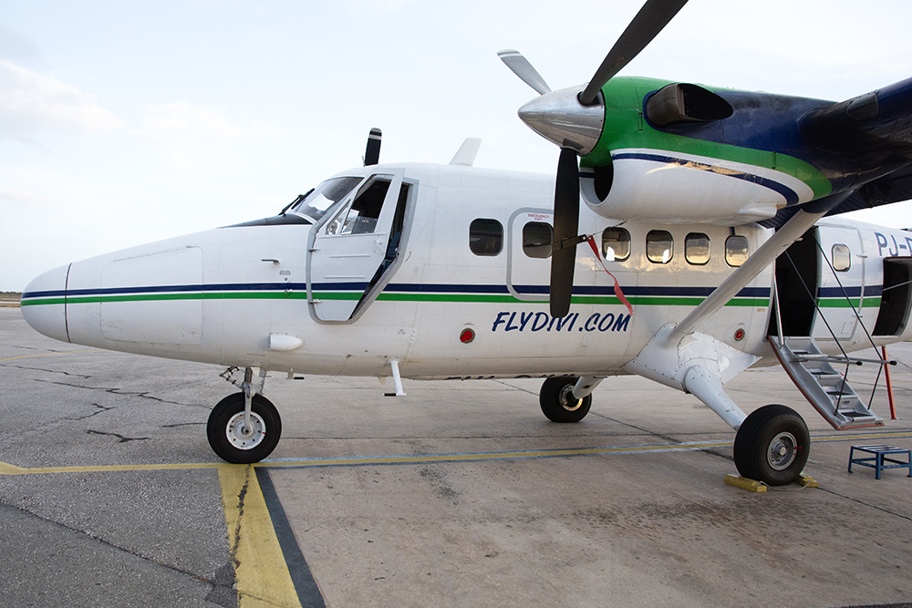 Het is niet goedkoop, maar zeer de moeite waard; een vlucht van twintig minuten naar Curaçao. Dat komt omdat je voor zo’n interinsulaire tocht de keuze hebt uit verschillende vliegtuigtypen die in ons land en zelfs in West-Europa niet of nauwelijks voorkomen. Up in the Sky vloog heen met een Saab 340 van ZAir en terug met een De Havilland Canada Twin Otter van Divi Divi Air. Het zijn oude en kleine passagiersvliegtuigen met propellers, waarbij je als je vooraan zit in de Twin Otter ook nog eens het werk van de piloten kunt gadeslaan. Een cockpitdeur ontbreekt. Ook een overtocht per Divi Divi Britten-Norman BN2 Islander of ATR42 van Winair behoort tot de mogelijkheden.