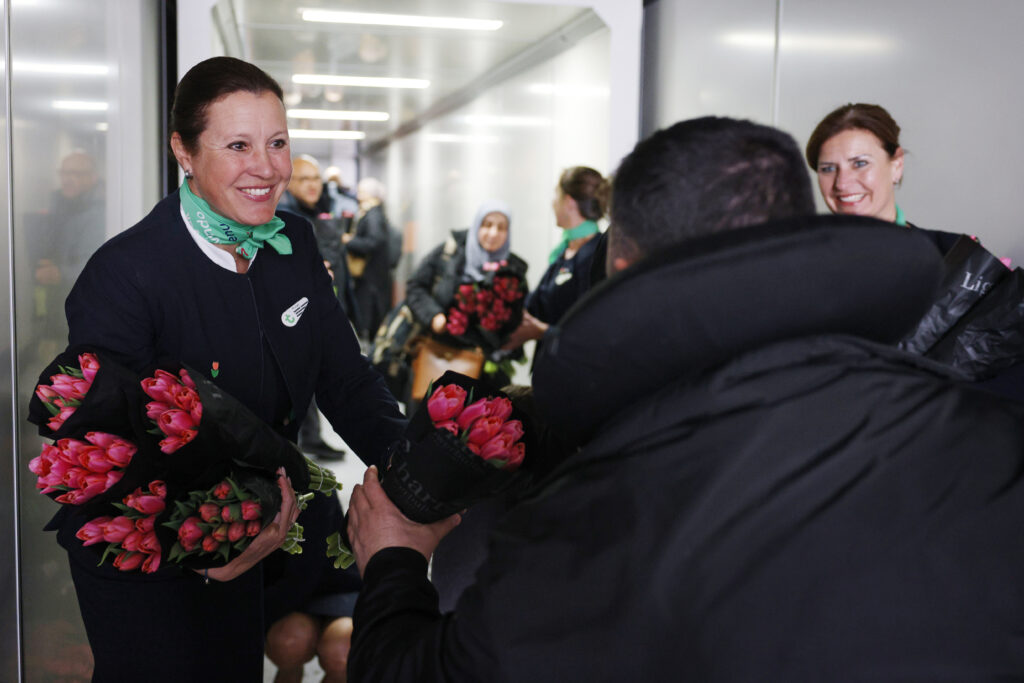 Voordat de A321neo-passagiers de tulpen overhandigd kregen, waren deze eerder deze week ‘gedoopt’ in het Amsterdam Tulip Museum. De Transavia-collega’s die geboren zijn in 1965 (het jaar dat de luchtvaartmaatschappij opgericht werd, red.) waren aanwezig, evenals de jonge aanwas die de toekomst van de maatschappij vertegenwoordigt.