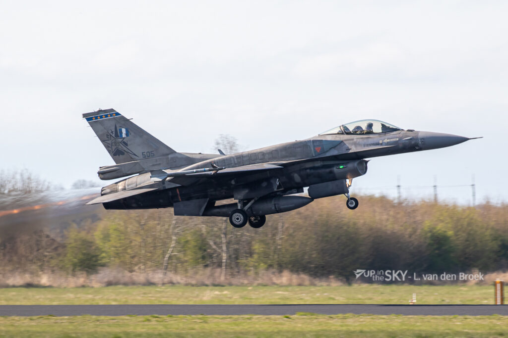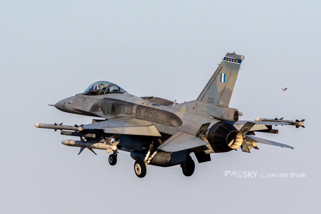 De Griekse luchtmacht was op Leeuwarden aanwezig met vijf F-16’s van het 343e squadron. Deze eenheid is gestationeerd op Kreta, en is uitgerust met de allermodernste versie van de F-16 (Block 72/F-16V). Eén van de taken van het squadron is SEAD, “Suppression of Enemy Air Defence” – het aanvallen en vernietigen van luchtdoelraketten, SAM’s dus. Voor de oefening droeg één van de F-16’s AGM-88 HARM (oefen)raketten mee. Deze wapens zijn speciaal ontworpen om SAM’s en en de bijbehorende radar uit te schakelen.
