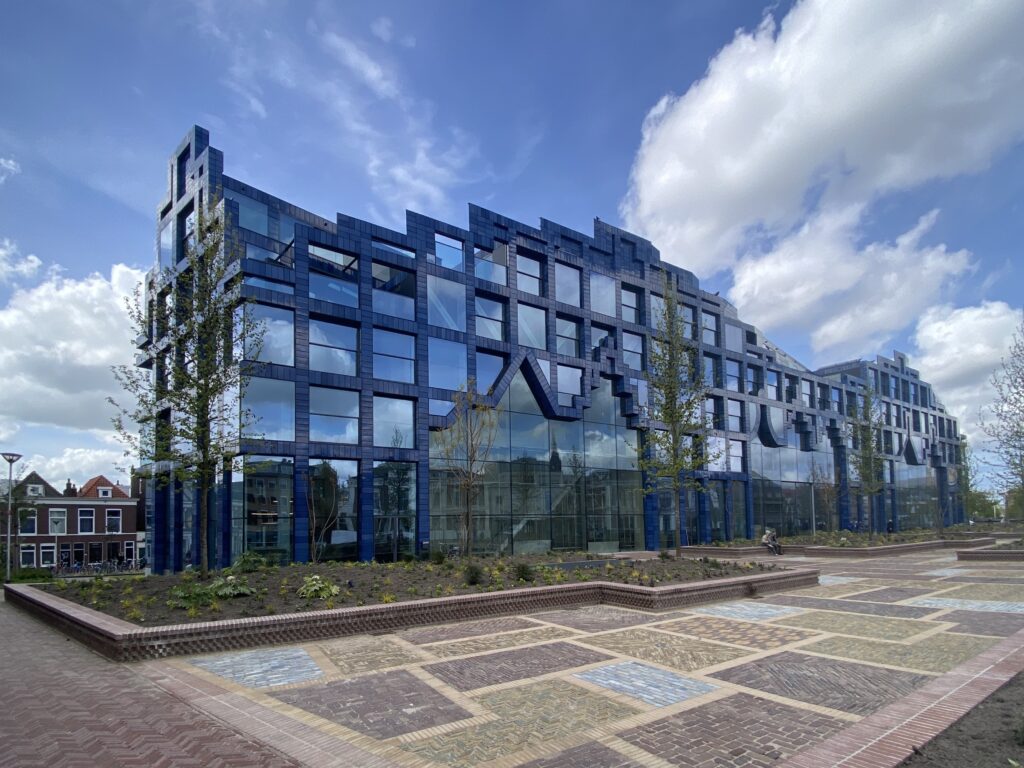 Mark bleef daarbij in beeld. Het idee van een KLM-huisjeswijk liet hij plaatsmaken voor de terugkeer van contouren van de gevels van huizen waarin ooit Delftse pioniers woonden: onder anderen Willem van Oranje, Antoni van Leeuwenhoek, Piet Hein, Hugo de Groot en Johannes Vermeer. Het pand is helemaal bekleed met semi-handgemaakte keramische tegels in negen verschillende kleurnuances blauw. Ook het kunstwerk van Job Smeets, dat zich achter de glazen gevels bevindt, is vervaardigd van handgeschilderde Delfts blauwe tegels. Alle tegels zijn ontwikkeld en geproduceerd door de fabriek van Koninklijke Tichelaar. Maar wat als je toch een hele hoop gevels van KLM-huisjes bij elkaar wilt zien? ‘Dan moet je bij KLM een ticket boeken voor een vlucht in een van hun Boeings 787’s en naar een van de toiletten gaan, dan zie je er een hele trits’, aldus het advies van Mark.