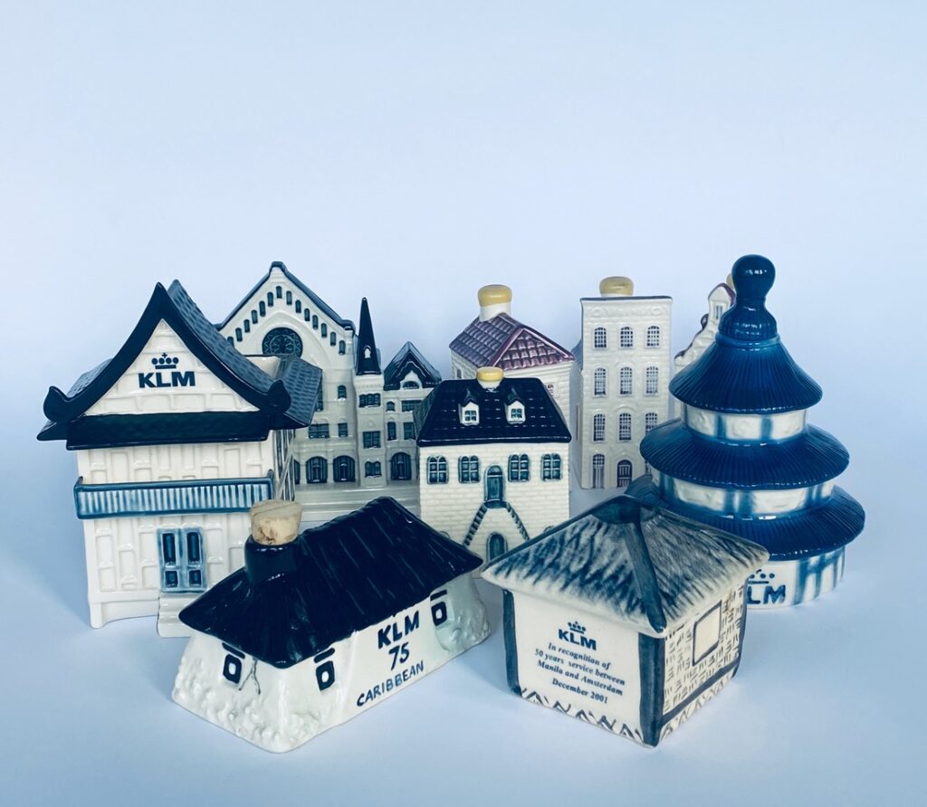 Hij maakt een duik in de geschiedenis: ‘In 1952 ging KLM voor de uitgifte van de eerste huisjes die geproduceerd werden door N.V. Koninklijke Plateelbakkerij Zuid-Holland, beter bekend onder de naam Plazuid, een samenwerking aan met de firma Rynbende die ze vulde met likeur. In 1964, toen Plazuid failliet ging, nam Royal Goedewaagen de productie over. Met de introductie van de World Business Class waren er ineens veel meer huisjes nodig. Daarmee werd de productie in China een feit. Veel mensen vinden het gek dat een typisch Nederlands product in China wordt gemaakt. Maar die KLM-huisjes zijn Delftsblauw en Delftsblauw is oorspronkelijk geïnspireerd op Chinees porselein. Dus in zekere zin is het niet zo gek…’