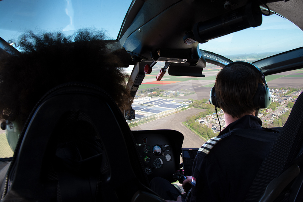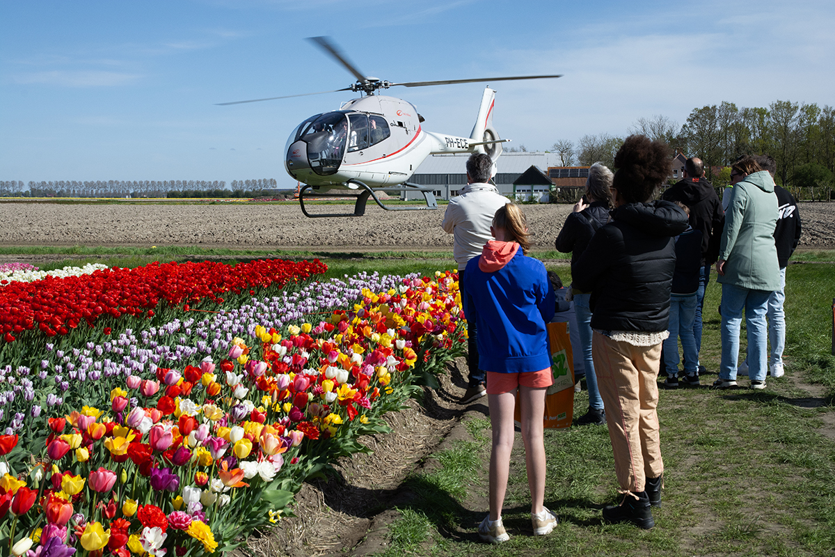 De plus bij de tulpenvluchten zit hem in de eerste plaats in het feit dat vlieger Veendrick is opgegroeid tussen de bollenvelden in de NOP. Zijn beide opa’s begonnen er te pionieren in de jaren vijftig. Tegenwoordig woont hij met zijn gezin in Spaarndam. In het dagelijks leven vliegt hij off- en onshore bij Heli Holland. Hij kent de mooiste plekjes en weet via de headset van alles te vertellen over de tulpenteelt. Maar er is nog een plus. De vlieger voldoet graag aan verzoeknummers, mits passend binnen de vliegtijd.