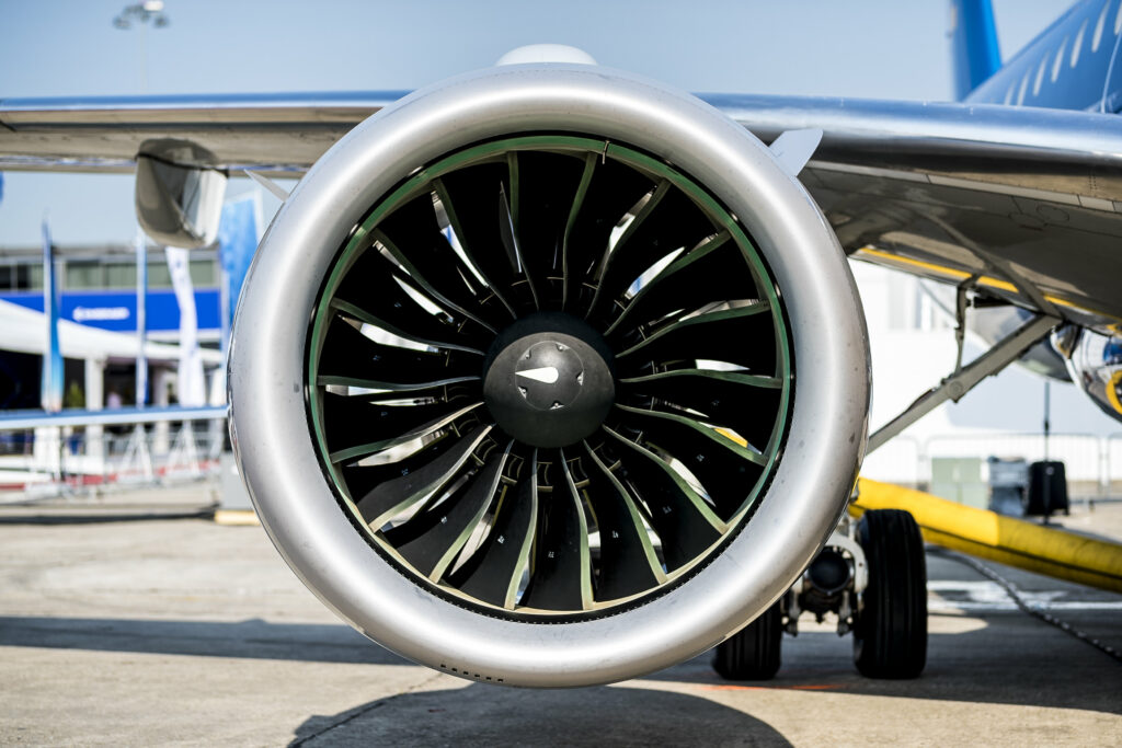 Voor de Embraer ERJ-familie met de EMB-135 en de EMB-140 koos de vliegtuigbouwer in de vroege jaren ’90 voor Rolls-Royce-motoren. De daaropvolgende E-jets, de E170, E175, E190 en E195 werden twintig jaar geleden voorzien van General Electric-motoren. Onder de E-jet E2—jet-familie kwamen uiteindelijk motoren van Pratt & Whitney te hangen. Arjan: ‘Na met alle motorproducenten te hebben onderhandeld koos Embraer destijds voor de P&W GTF, Geared Turbo Fan. Voor de oplages die wij maken is het heel duur om daarop twee motortypes te certificeren, vandaar de keuze voor één leverancier. In het nieuwe concept van Pratt & Whitney kan de fan van de motor langzamer draaien en de turbine sneller door middel van een gear. Samen met een grotere afmeting van de fan levert dit motor type zeer veel efficiencyvoordelen. In vergelijking met het voorgaande type levert de motor an sich zestien procent brandstofbesparing op. Maar hij is ook zwaarder. Dus zodra we hem onder de vleugel hangen blijft er elf procent over.’