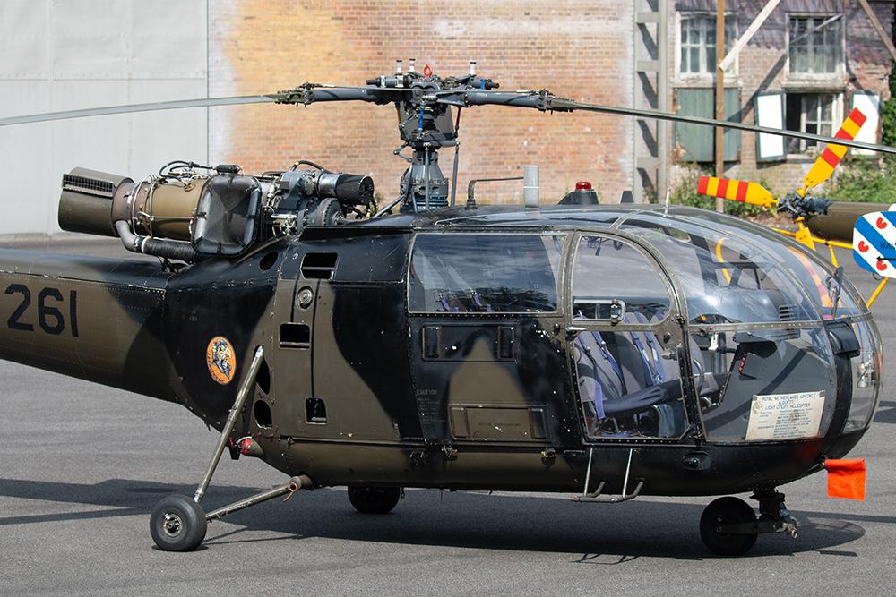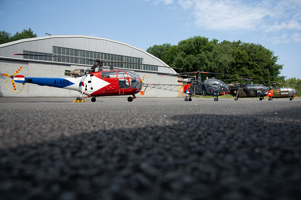 Ook de SAR-Alouette III kwam per oplegger naar Deelen. Het toestel doet dienst als poortwachter op de vliegbasis Leeuwarden. Daar raakte het onlangs beschadigd door noodweer. De Alouette Foundation heeft aangeboden om de helikopter op Deelen te repareren. Uit het Leerdock 299 Squadron Gilze-Rijen kwam de gecamoufleerde Alouette III met registratie A-261. De wentelwiek wordt gebruikt als sleutelobject. Het Nationaal Militair Museum leverde ook de A-465 in Grasshopper-kleuren. Dit team was van 1973 tot 1995 het visitekaartje van onze luchtmacht en een graag geziene gast op vliegshows in binnen- en buitenland.