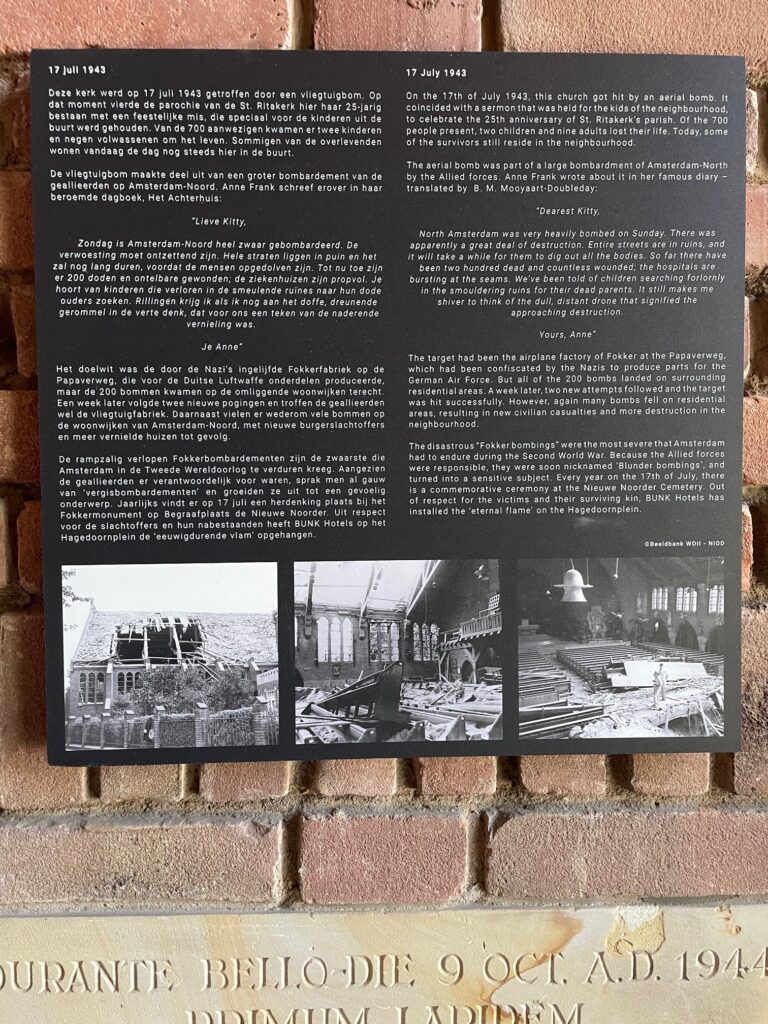 Op 17 juli 1943 kwamen 41 B-17 Flying Fortress-toestellen van de Amerikaanse Bomb Group 385 en Bomb Goup 388 in actie. Boven IJmuiden werd wel duidelijk dat de weersomstandigheden ongunstig waren. De formatie kreeg daarom opdracht de aanval af te breken. Er ontstond echter verwarring onder de – nog onervaren – bemanning. Twintig bommenwerpers keerden terug, de rest vloog door richting de fabriekshallen van Fokker in Amsterdam-Noord. De Amerikanen, die gewend waren vanaf zeven kilometer hoogte te bombarderen omdat er dan minder last werd ondervonden van het Duitse afweergeschut, gooiden onder slechte weersomstandigheden meer dan 150 brisantbommen af met de bedoeling Fokker plat te krijgen. Maar Fokker werd daarbij in het geheel niet geraakt. Wel de Van der Pek- en Vogelbuurt. Huizen, winkels, een politiebureau, een synagoge en drie kerken werden verwoest. Behalve de vele gewonden vielen er 189 dodelijke slachtoffers. Het betreft het zwaarste bombardement dat Amsterdam in de Tweede Wereldoorlog te verduren kreeg. Anne Frank schreef erover in haar dagboek: ‘Zondag is Amsterdam‑Noord heel zwaar gebombardeerd. De verwoesting moet ontzettend zijn, hele straten liggen in puin. Je hoort van kinderen die verloren in de smeulende ruïnes naar hun dode ouders zoeken. Rillingen krijg ik als ik nog aan het doffe, dreunende gerommel in de verte denk.’