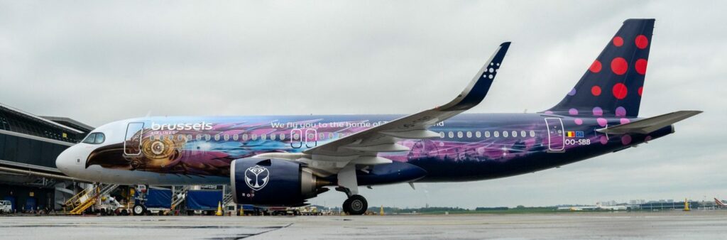 Voor de ‘party flights’ lanceerde Brussels Airlines vorig jaar zelfs een speciale livery. Een Airbus A320neo van de maatschappij, registratie OO-SBB, is voor de tweede keer in een speciaal Tomorrowland-kleurenschema gespoten. Het vliegtuig biedt plaats aan 180 passagiers en kreeg de bijnaam “Amare”, wat Latijn is voor “houden van”. Bovendien draagt het toestel de leus ‘We fly you to the home of Tomorrowland’.