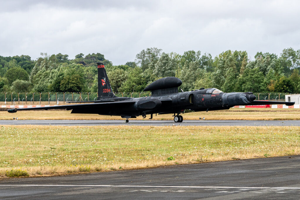 De Amerikaanse luchtmacht is altijd sterk aanwezig op de Air Tattoo. De USAF heeft geen vliegtuigen permanent gebaseerd op RAF Fairford, maar wel personeel. Sinds 2019 is er een detachement van het 99th Reconnaissance Squadron op Fairford aanwezig met enkele U-2S verkenningsvliegtuigen. Dit unieke toestel was vorig jaar ook al te zien tijdens de show, dit jaar gaf de U-2 het verkenningsthema extra glans. Tijdens de Air Tattoo waren dit jaar maar liefst twee U-2’s te zien: één U-2S was op de grond te zien, een tweede vloog op zaterdag en zondag een demonstratie. Verwacht geen snelle passes of bulderende naverbranders van dit toestel. Dit 70 jaar oude ontwerp (eerste vlucht in 1955!) ziet er opvallend uit: met een spanwijdte van ruim 30 meter en een lengte van bijna 20 meter lijkt het toestel meer op een gemotoriseerd zweefvliegtuig. De matzwarte verf geeft het type een mysterieuze uitstraling. De manier waarop het vliegtuig landt is ook ongewoon. Door de lange neus en de positie van het hoofdlandingsgestel (onder de romp) heeft de piloot ondersteuning nodig. Tijdens de landing rijdt een snelle auto met een collega-vlieger achter de U-2 over de landingsbaan. Deze telt de vlieghoogte af tot aan “touch down” (‘ten feet, eight feet, seven feet, …’), zodat de piloot in de U-2 weet hoe hoog hij zit.