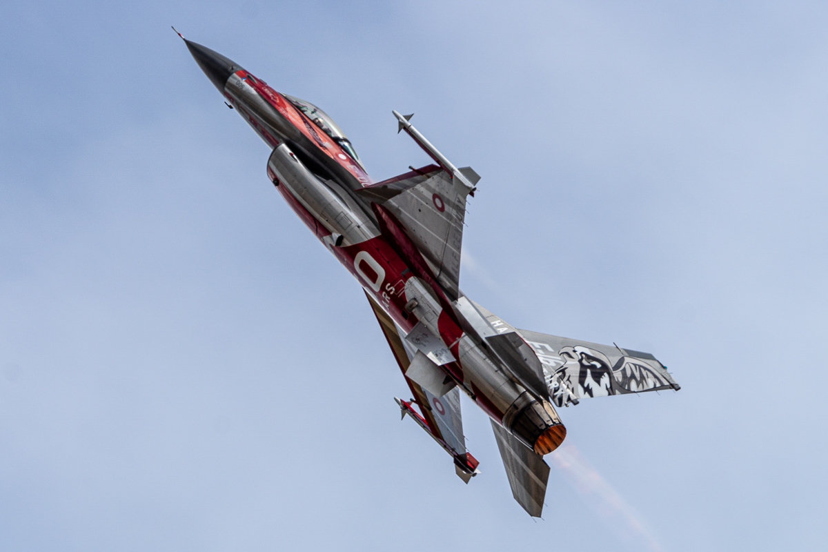 Hoewel beduidend minder F-16’s dan vorig jaar, waren er toch enkele “Vipers” aanwezig op Fairford. De twee pechvogels van vorig jaar revancheerden zich met glans; de Poolse luchtmacht had het F-16 demoteam vorig jaar kort voor de show teruggetrokken en de Deense F-16, in de Deense nationale kleuren, kon vorig jaar het gehele weekend niet vliegen vanwege technische problemen. Beide F-16’s vlogen dit jaar een indrukwekkende demo. Voor de Deense F-16 was het een passend afscheid: vanwege de naderende uitfasering van de F-16 bij de Deense luchtmacht is dit het laatste jaar van de Deense demo-F-16.