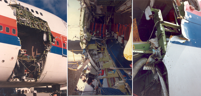 Op 24 februari 1989 voerde een Boeing 747-100 van United Airlines, registratie N4713U, een vlucht uit van Los Angeles naar Honolulu, vervolgens naar Auckland en Sydney. Zestien minuten na het opstijgen vanuit Honolulu klonk er ineens een harde knal, waarbij de voorste vrachtdeur van de Jumbo openging en er boven de Stille Oceaan uitvloog. Als gevolg van een explosieve decompressie werden negen passagiers met hun stoelen uit de cabine geslingerd. Het beschadigde vliegtuig kon veilig landen op Honolulu Airport. Van de 337 passagiers en achttien bemanningsleden kwamen er negen om het leven en raakten er 38 gewond. Ook in dit geval was sprake van een ontwerpfout. Al in 1975 besefte Boeing dat het zaak was de te zwakke aluminiumvergrendelingsmechanismen van de vrachtdeuren te vervangen door stalen exemplaren. In 1988 werd dit door de FAA verplicht gesteld. Echter, nadat in 1990 de beide helften van de laaddeur in de Stille Oceaan waren teruggevonden, wees nader onderzoek uit dat er sprake was van een ondeugdelijke elektrische bedrading.