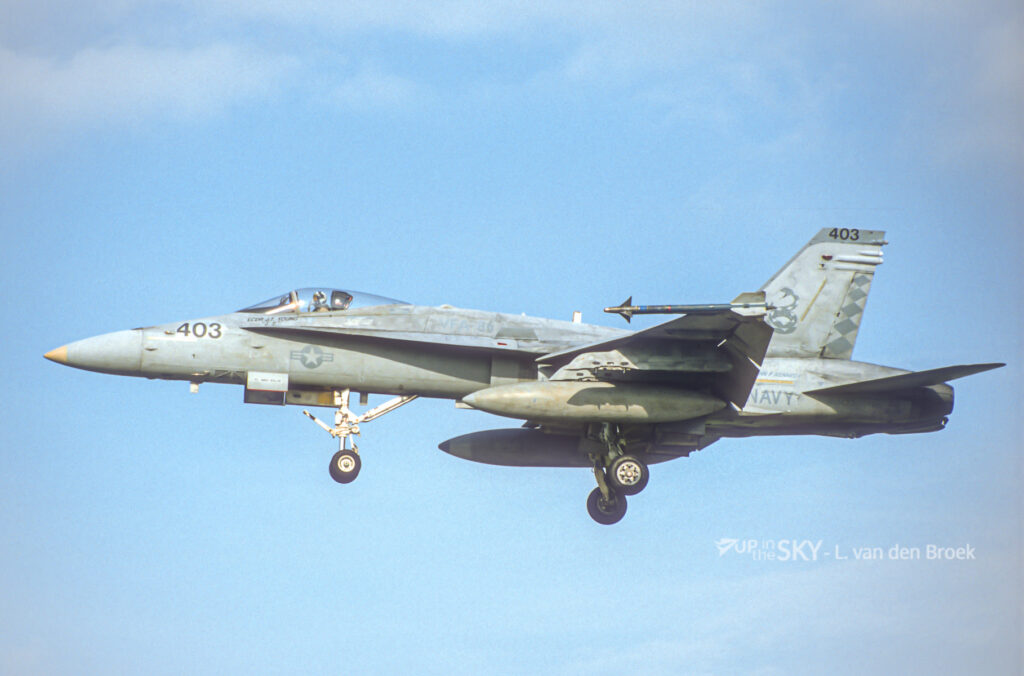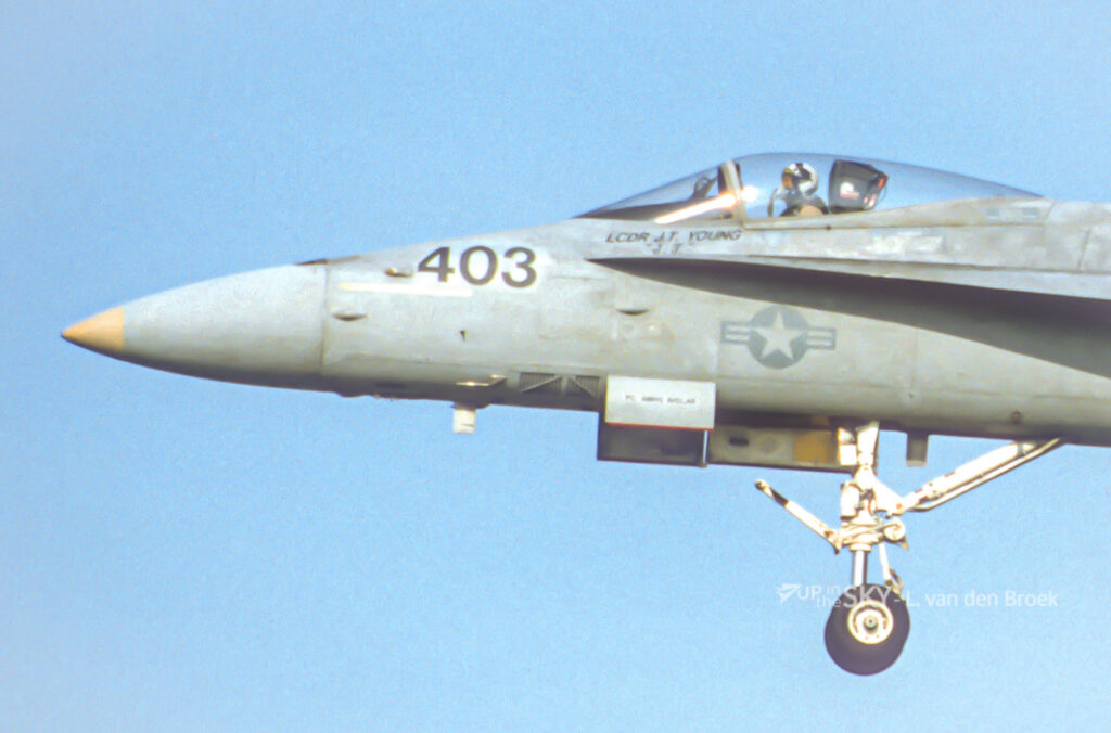 Het eerste operationele Hornet-squadron van Vincent Aiello was VFA-86 “Sidewinders”, dat toen met de F/A-18C Hornet vloog. In het najaar van 1999 kwam een aantal toestellen van de Carrier Air Wing van het vliegdekschip naar Europa. Een van de oefeningen waaraan werd deelgenomen, was de “Frisian Flag” op vliegbasis Leeuwarden. Jell-O was als één van de gelukkigen van de partij. ‘We vlogen vanaf de Middellandse Zee, waar het vliegdekschip lag, via het Verenigd Koninkrijk, waar we een tankstop maakten. Ik herinner me dat op Leeuwarden honderden mensen op de grond stonden om ons te zien landen. Dat hadden we niet verwacht! Verder herinner ik me nog goed dat we briefings kregen van vliegers uit andere landen. De concepten zijn bekend, maar soms was de terminologie toch net even anders. Zo legde een piloot bijvoorbeeld uit wat we moesten doen als een toestel voor het opstijgen “crapped out” ging (dat wil zeggen kapot ging en niet kon vliegen): wij zouden dat een “fallout” noemen. Dat soort kleine verschillen waren interessant, maar uiteindelijk wisten we allemaal wat we moesten doen en hebben we het samen goed uitgevoerd.’