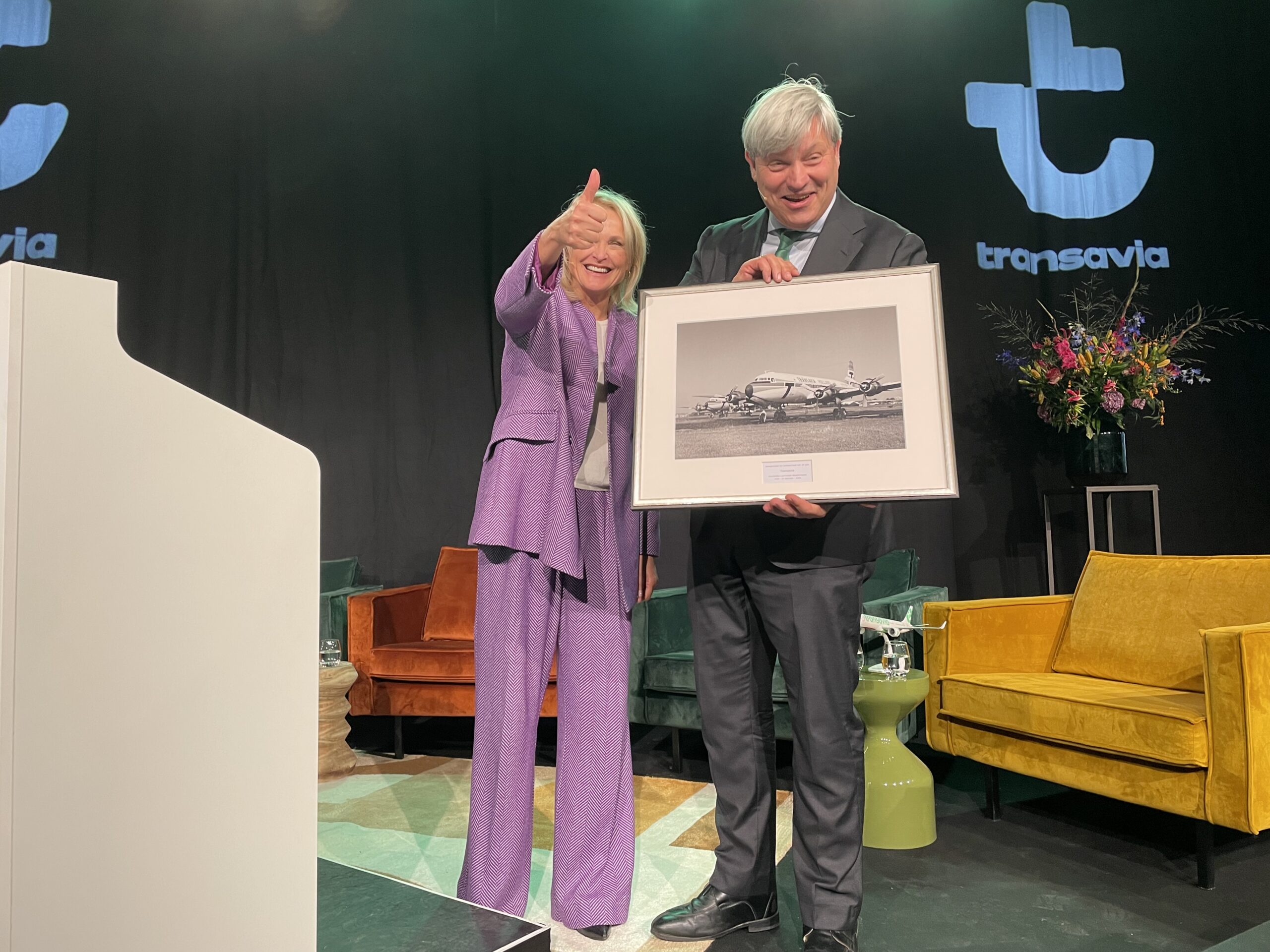 ‘De meeste bedrijven bestaan vijftien jaar, er is veel concurrentie, maar Transavia is er al zestig jaar’, zegt Marcel de Nooijer, CEO Transavia in zijn welkomstwoord. Alhoewel het geen familiebedrijf is, beschouwt hij het toch als zodanig: de mensen die er werkzaam zijn vormen één grote familie met een groen hart.
