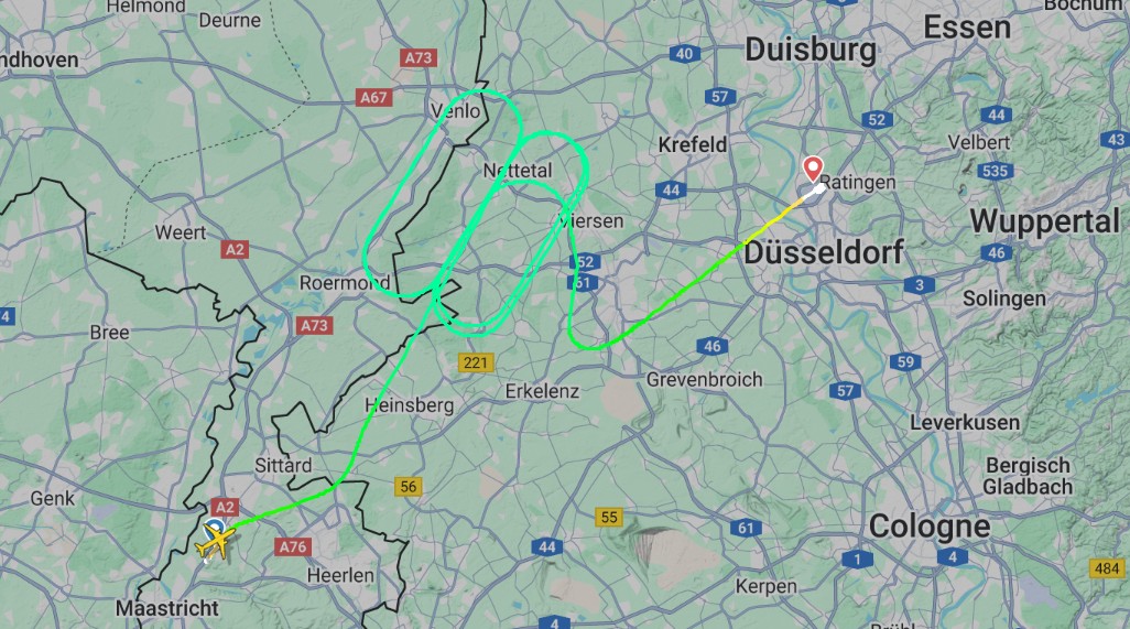 De crew vloog vervolgens een tijdje in een holding pattern, waarna ze besloten uit te wijken naar de luchthaven van Düsseldorf. Hier kwam het toestel drie kwartier later aan. Door het incident is de luchthaven van Maastricht een korte tijd dicht geweest. Dit had echter geen gevolgen voor vertrekkend of landend verkeer.