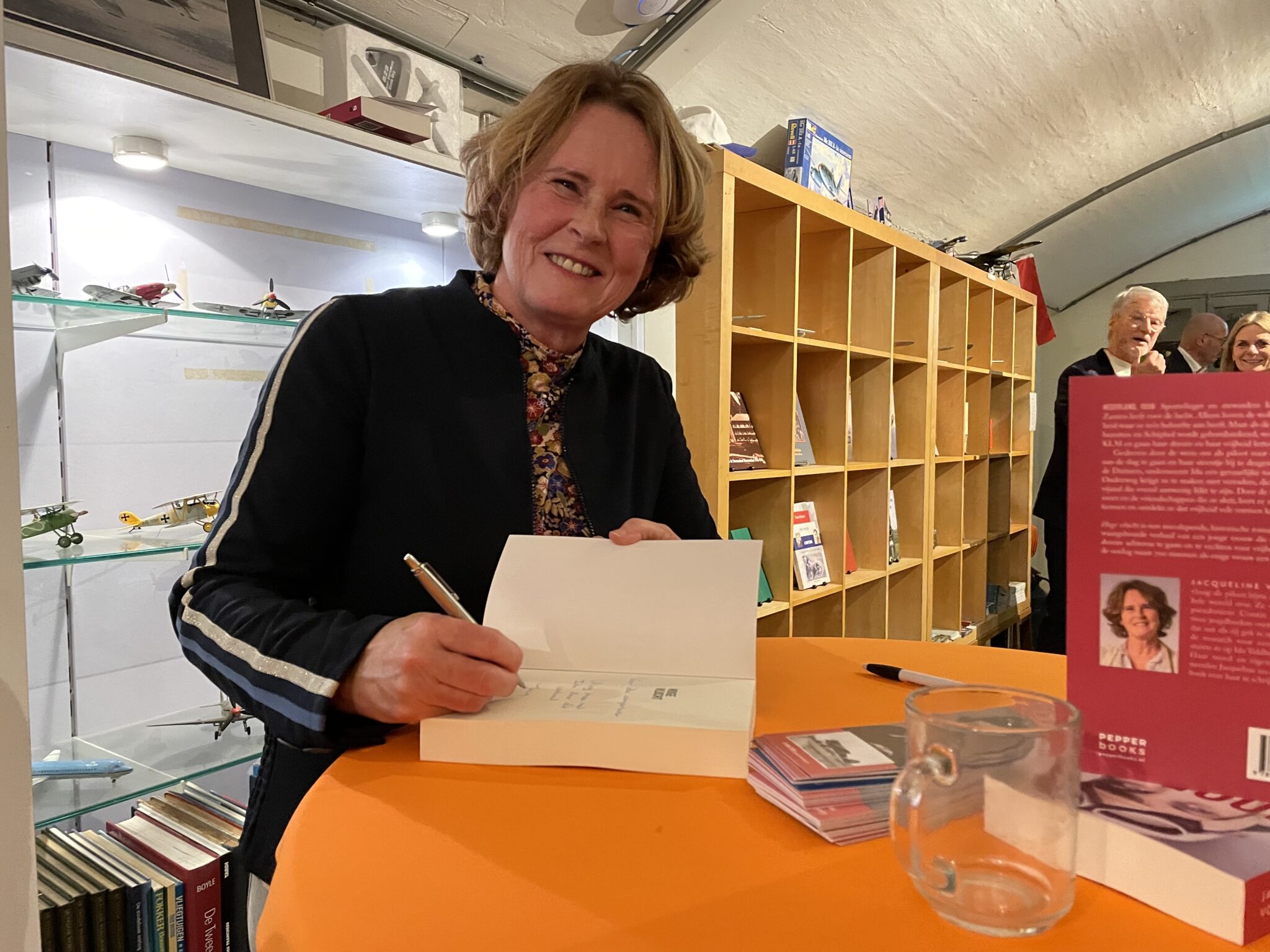 Wat Jacqueline met de tot nog toe door haar geschreven boeken bovendien heeft willen laten zien, is dat niet alleen jongens maar ook meisjes willen en kunnen vliegen. ‘Zelf had ik geen rolmodel nodig, maar voor menigeen geldt dat wel’, stelt ze. ‘Als je als meisje alleen maar vrouwen in de cabine ziet en niet in de cockpit, ligt de conclusie minder gauw voor de hand dat je zelf kunt gaan werken als piloot.’ Het eerste exemplaar van Hoge vlucht overhandigt ze tijdens de boekpresentatie aan Nikky Findlay – van der Heeft, nu gezagvoerder bij easyJet en voor deze speciale gelegenheid gekleed in een ATA-uniform. ‘Zij is de dochter van vrienden en ik hoop dat ik als rolmodel een rolletje heb gespeeld bij haar keus om vlieger te worden’, licht Jacqueline toe.