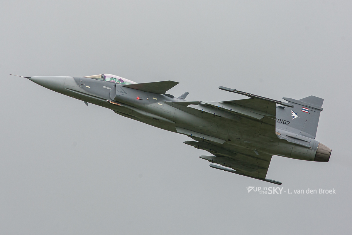 Thailand plaatste in 2007 een eerste bestelling voor zes JAS 39C/D Gripens, in 2010 volgde een tweede order van zes toestellen. Tussen 2011 en 2013 werden de Gripens afgeleverd. Inmiddels beschikt Thailand nog over elf Gripens, één JAS39C ging verloren bij een crash in 2017. In augustus 2025 werd bekend dat Thailand haar F-16A/B gevechtsvliegtuigen wil vervangen door de Gripen E/F. Een eerste bestelling voor vier toestellen is inmiddels geplaatst bij SAAB. Thailand heeft op dit moment twaalf F-16’s van bijna veertig jaar oud. De kans is dan ook groot, dat SAAB een vervolgorder tegemoet kan zien.