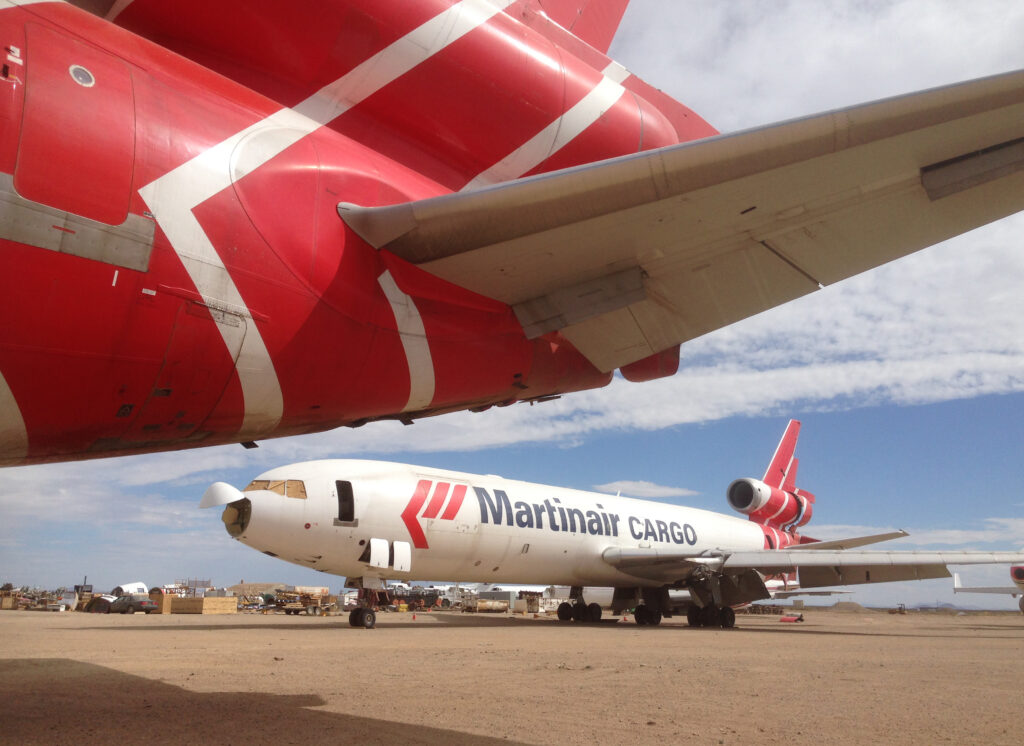 Ook de maatschappij met de rode staart vloog haar werkpaarden naar Mojave. Nooit vertrokken deze MD-11’s leeg vanaf hun thuishaven. Op de plek waar de laatste keer vracht van boord werd gehaald, volgde de inklaring van de machine door de Amerikaanse douane. Daarna was er geen ontkomen meer aan de transfer naar Mojave Airport voor ontmanteling. Martinair liet er vier van haar elfjes achter: de PH-MCR, MCY, MCW en MCP; de eerste twee in 2015, de andere twee in 2016. Op al deze toestellen is nog duidelijk te zien voor wie zij ooit vlogen. De naam van de Nederlandse luchtvaartmaatschappij staat er als vanouds in niet te missen grote letters op. En op de MCW prijkt nog steeds de naam van Martin Schröder, de oprichter van Martinair.